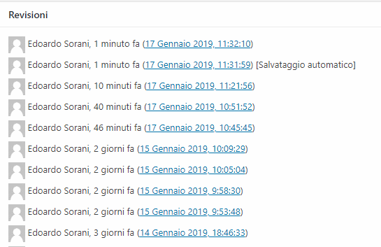 Quando scriviamo un post o una pagina usando l’editor di WordPress e poi salviamo come bozza, mettiamo in attesa di revisione o pubblichiamo il contenuto, WordPress salva nel database quella versione. Se torniamo sul contenuto, lo modifichiamo e lo ripubblichiamo, il CMS salva in memoria anche la nuova versione.